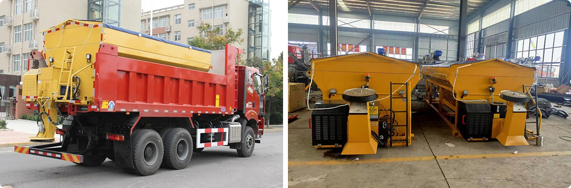 冬季来临,道路除雪保通提上工作日程,撒布机可采用吊车或其它起重设备进行装车作业。撒布机与车体必须确认连接牢固、可靠后才能在道路上进行除雪作业。