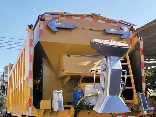 车尾不撒盘采用折叠式作业行驶更方便,撒布拨盘:直式方形筒,拨盘离地高度可调节,有不同档位,适合不同车型安装,尾闸门两侧设有仓门调节装置,停止工作时能快速清理仓内多余的融雪剂,双爆闪箭头灯视线差的天气能很好的提醒后面行驶的车辆保持车距。多道安全保护装置保证了操作工人的安全性;