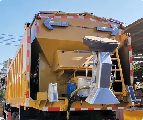 10、可选配预湿功能,水箱安装于盐仓两侧;可预湿融雪剂颗粒,快速融化,同时增强颗粒与地面附着力,防止风吹聚堆;也可用于撒布融雪液。