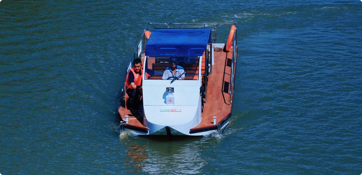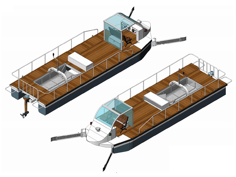用途:巡逻、河道保洁(水面上漂浮物自动清捞和打捞等功能)的一种纯电动保洁船。