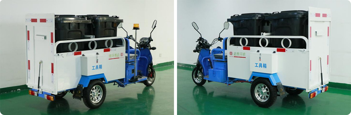 适应性强:相比于大型垃圾运输车,三轮纯电动双桶车车身小巧灵活,安全可靠,适合穿越城市乡镇各种狭小的街道等,更适合在人群密集的闹市区行动。