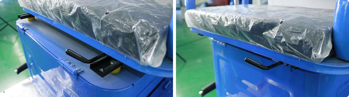 通过调节器可将座位向前或向后调节,方便各类体型操作员驾驶车辆