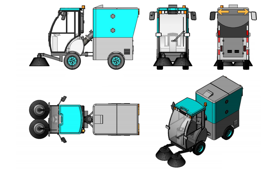 14、扫刷、扫路机转向、箱体举升等功能均由液压系统驱动工作,配置智能脉冲充电机;