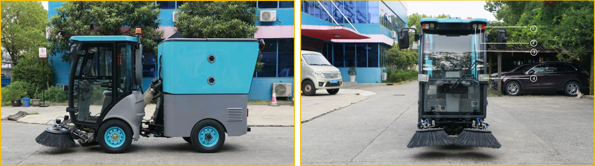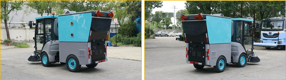 3、集尘纯吸系统采用7000W大功率电机驱动,所到之处一尘不染,配置1.2m³高位自卸铝合金垃圾箱,避免反复倾倒。